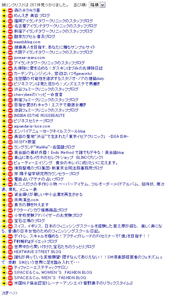 ↓実際の被リンクリストの一部(クリックで拡大)